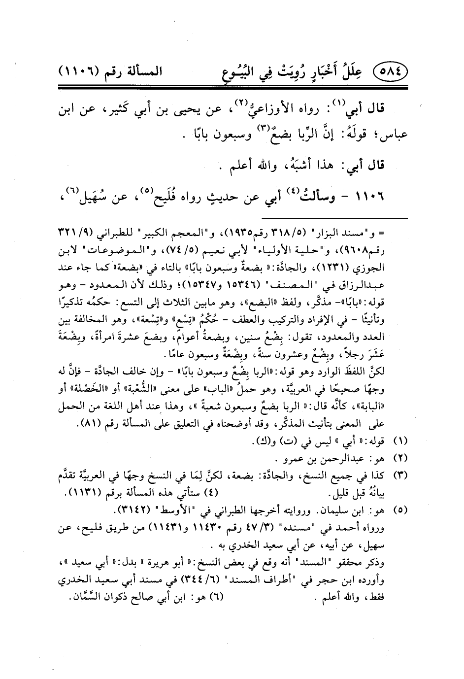 ١١٠٦ - وسألتُ (٤) أَبِي عَن حديثٍ رَوَاهُ فُلَيح (٥) ، عَنْ سُهَيل (٦) ،