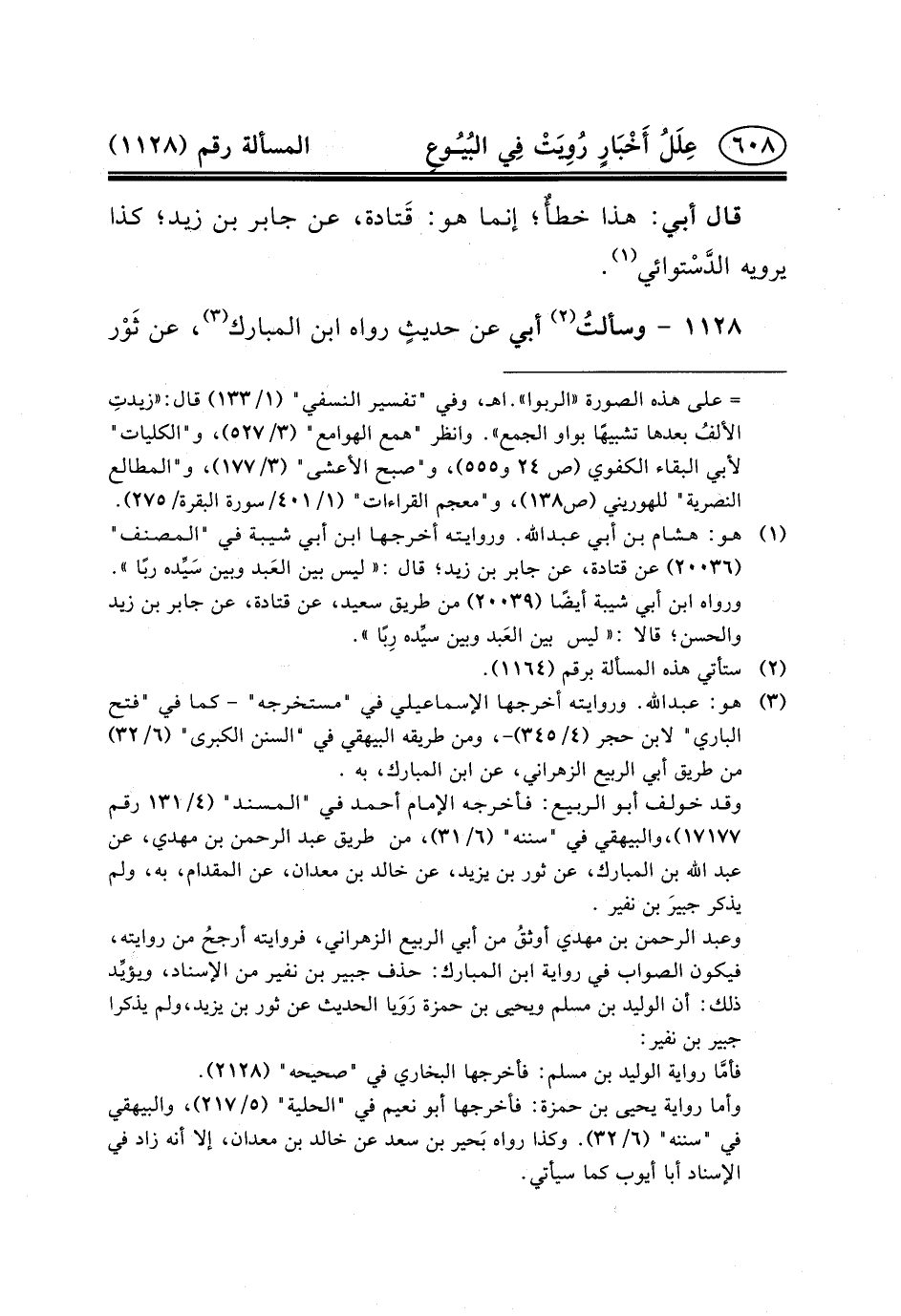 ١١٢٨ - وسألتُُ (٢) أَبِي عَن حديثٍ رَوَاهُ ابْنُ المبارك (٣) ، عن ثَوْر