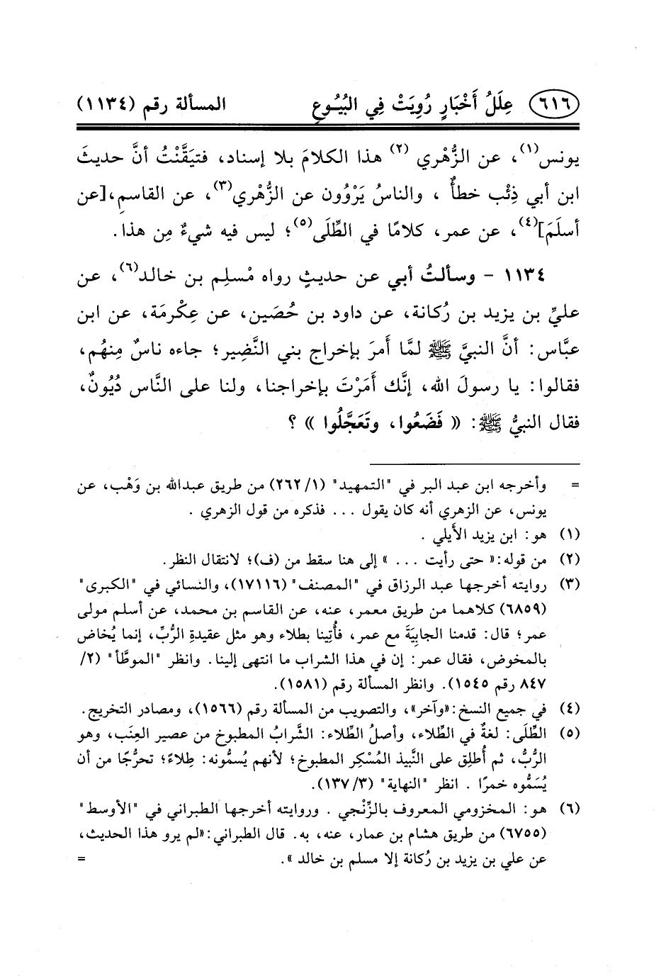 ١١٣٤ - وسألتُ أَبِي عَنْ حديثٍ رَوَاهُ مُْسلِم بْنُ خَالِدٍ (٦) ،