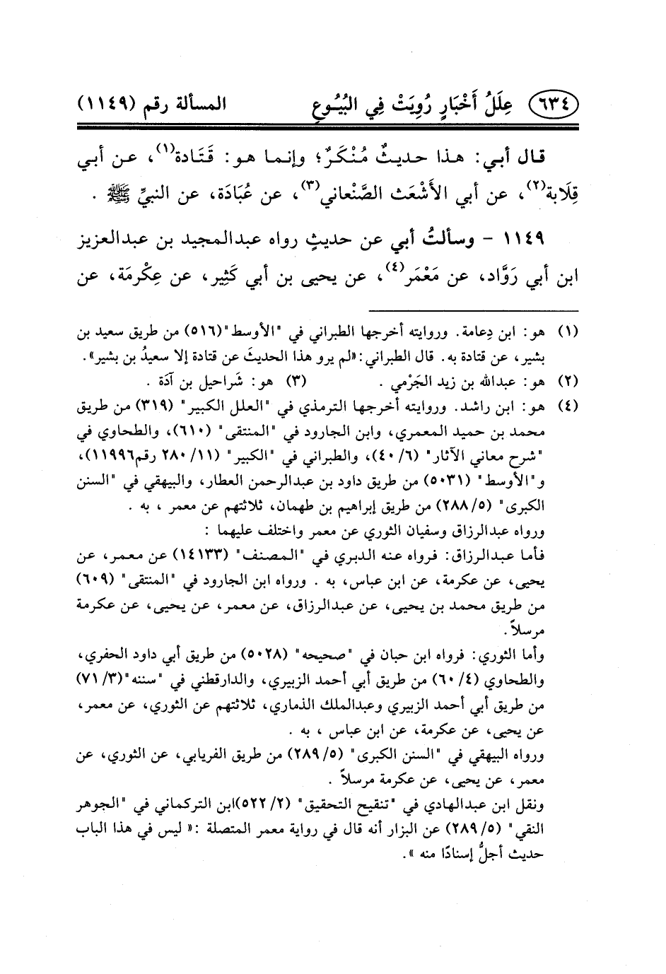 ١١٤٩ - وسألتُ أَبِي عَنْ حديثٍ رَوَاهُ عبد المجيد بن عبد العزيز ابن أَبِي رَوَّاد، عَنْ مَعْمَر (٤) ،