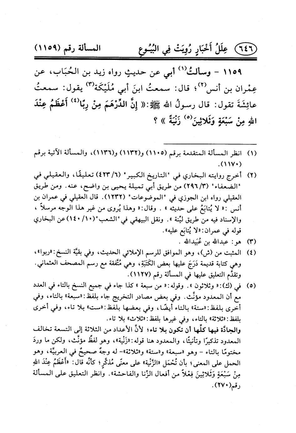 (١) انظر المسألة المتقدمة برقم (١١٠٥) و (١١٣٢) و (١١٣٦) ، والمسألة الآتية برقم (١١٧٠) .