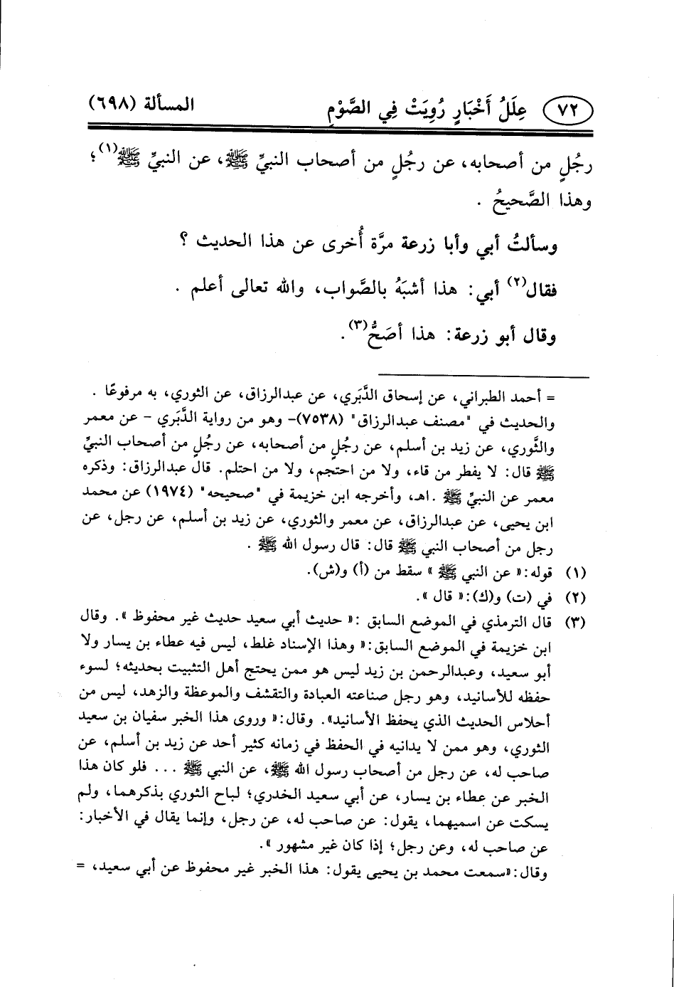 وسألتُ أَبِي وَأَبَا زُرْعَةَ مرَّة أُخرى عَنْ هَذَا الْحَدِيثِ؟