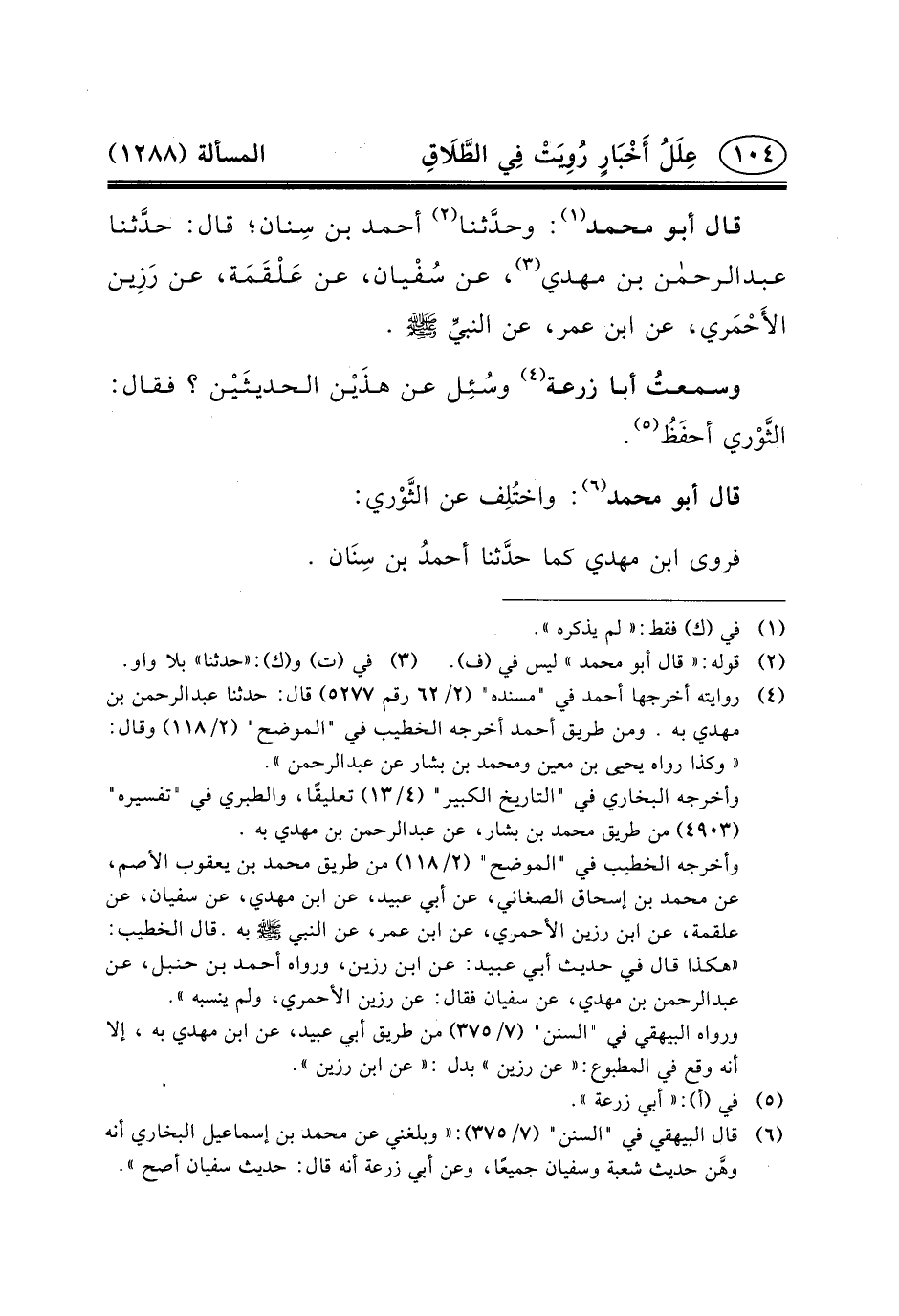 قال أَبُو مُحَمَّد (١) : وحدَّثنا (٢) أَحْمَد بْن سِنان؛ قال: حدَّثنا عبد الرحمن بْنُ مَهْدِيٍّ (٣) ،
