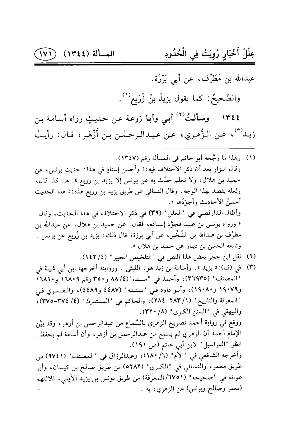 ١٣٤٤ - وسألتُ (٢) أَبِي وَأَبَا زُرْعَةَ عَنْ حديثٍ رَوَاهُ أُسَامَةُ بْنُ زيد (٣) ،