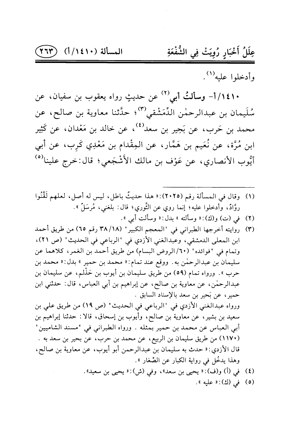١٤١٠/أ- وسألتُ أَبِي (٢) عَنْ حديثٍ رَوَاهُ يَعْقُوبُ بْنُ سُفْيَانَ، عَنْ سُلَيمان بن عبد الرحمن الدِّمَشْقي (٣) ؛