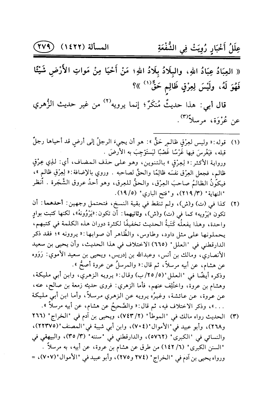 (٣) الحديث رواه مالك في "الموطأ" (٢/٧٤٣) ، ويحيى ابن آدم في "الخراج" (٢٦٦ و٢٦٨) ، وأبو عبيد في"الأموال" (٧٠٤) ، وابن أبي شيبة في "المصنف" (٢٢٣٧٥) ، والنسائي في "الكبرى" (٥٧٦٢) ، والدارقطني في "سننه" (٣/٣٥) ، والبيهقي في "السنن الكبرى" (٦/١٤٢) من طرق عَنْ هِشَامِ بْنِ عُرْوَةَ، عَنْ أبيه، به مرسلاً.