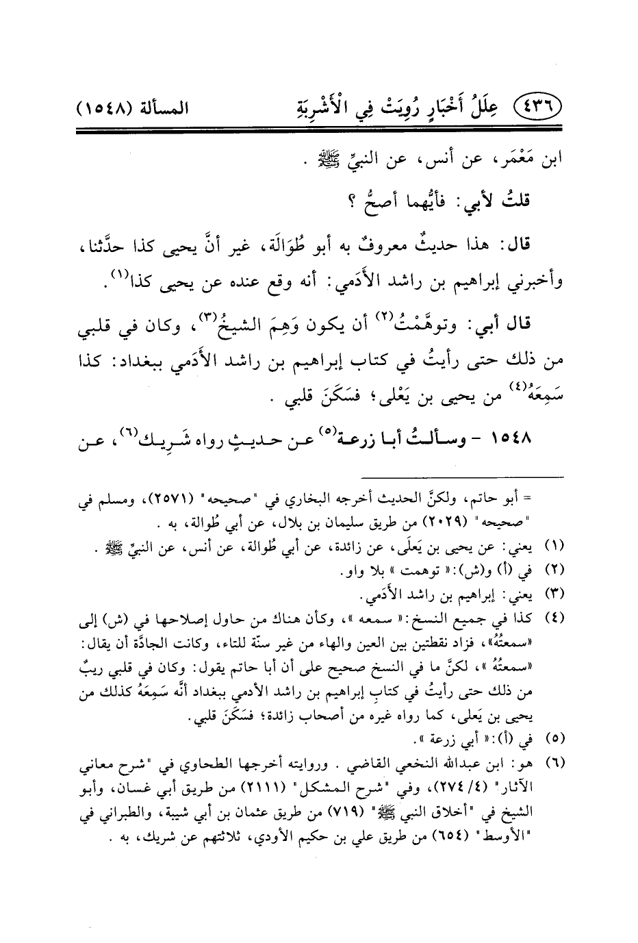 ١٥٤٨ - وسألتُ أَبَا زُرْعَةَ (٥) عَنْ حديثٍ رواه شَرِيك (٦) ، عن