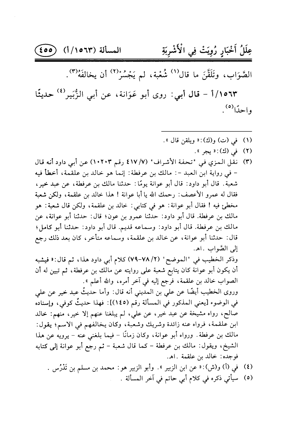 (٥) سيأتي ذكره في كلام أبي حاتم في آخر المسألة.