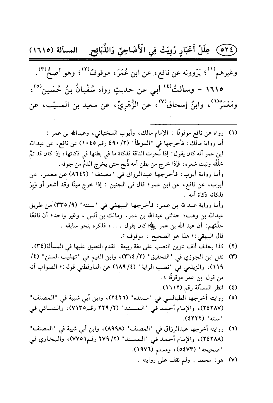 (١) رواه عن نافع موقوفًا: الإمام مالك، وأيوب السختياني، وعبد الله بن عمر: