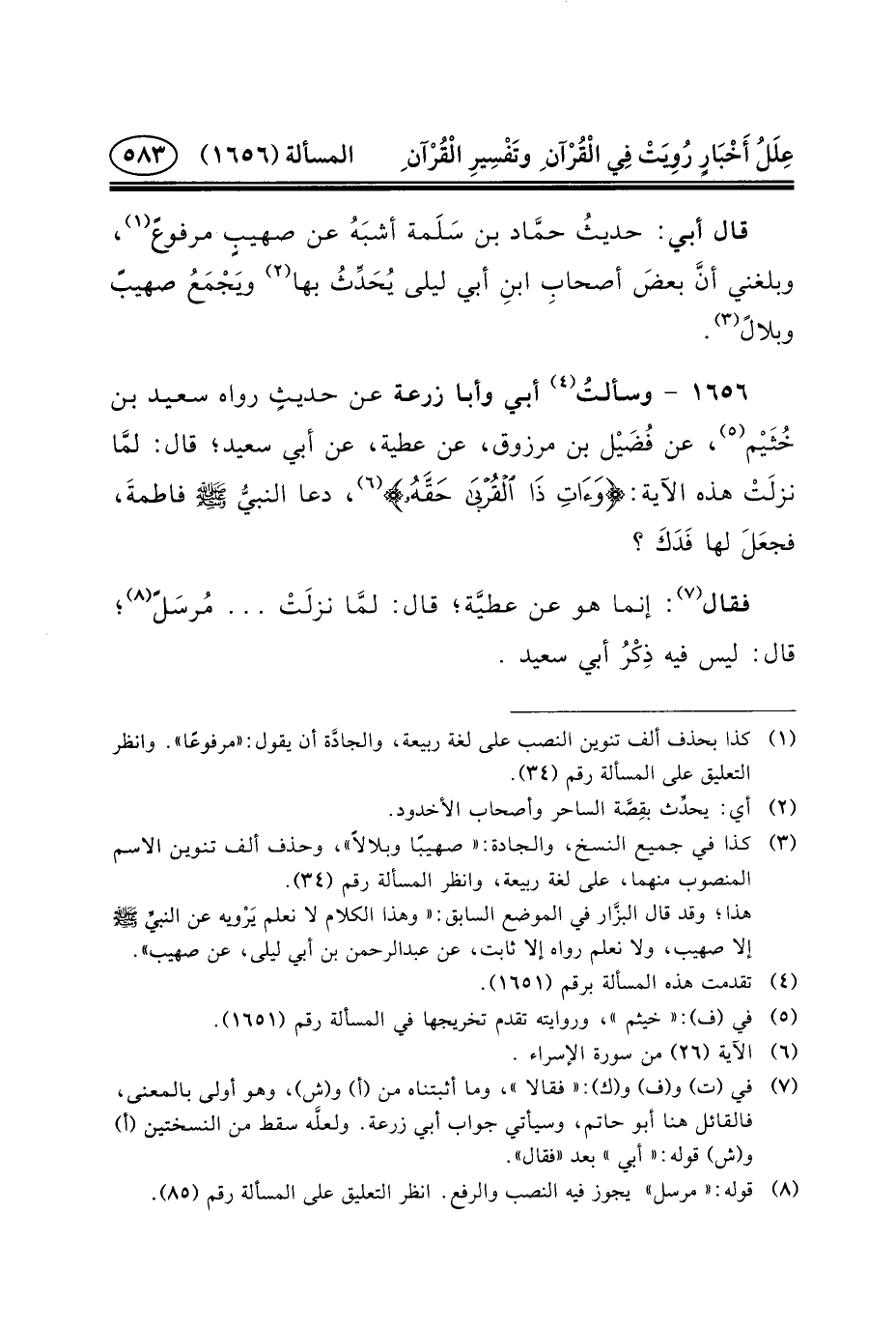 (٨) قوله: «مرسل» يجوز فيه النصب والرفع. انظر التعليق على المسألة رقم (٨٥) .