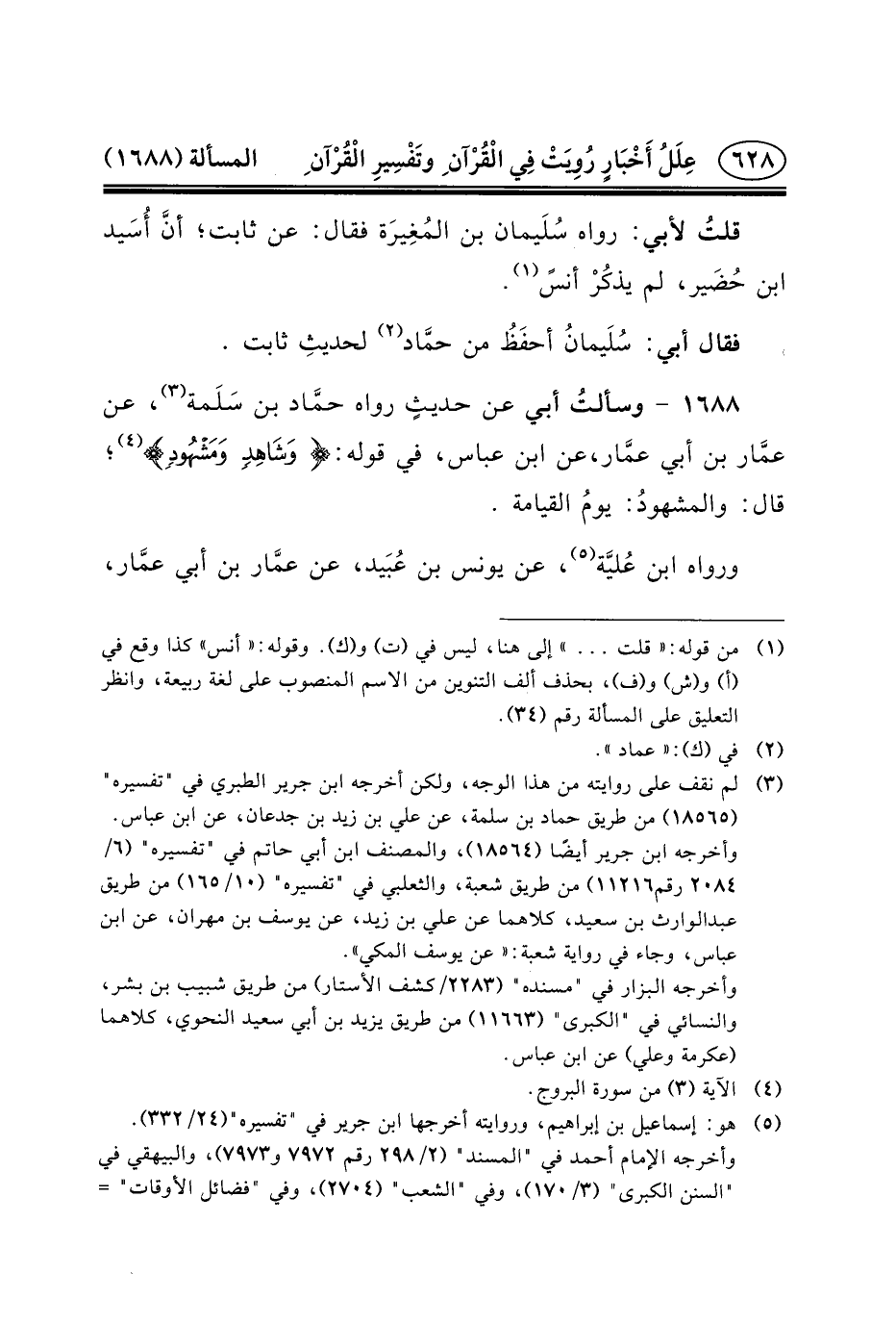 ١٦٨٨ - وسألتُ أَبِي عَنْ حديثٍ رَوَاهُ حمَّاد بْنُ سَلَمة (٣) ،