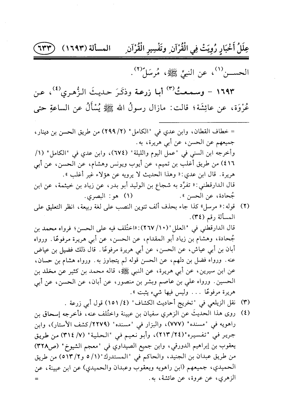 ١٦٩٣ - وسمعتُ (٣) أَبَا زُرْعَةَ وذكَرَ حديثَ الزُّهري (٤) ،