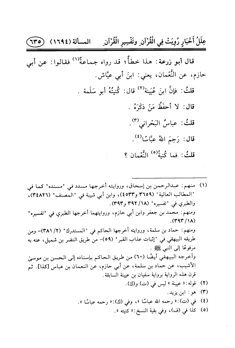 قَالَ أَبُو زُرْعَةَ: هَذَا خطأٌ؛ قد رَوَاهُ جماعةٌ (١)