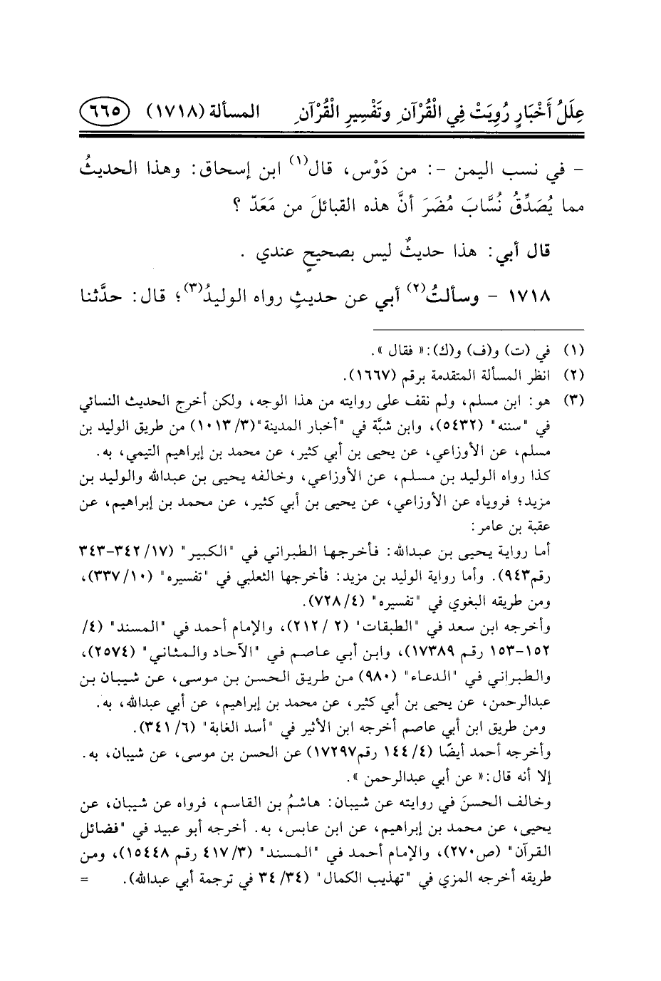 ١٧١٨ - وسألتُ (٢) أَبِي عَنْ حديثٍ رَوَاهُ الوليدُ (٣) ؛