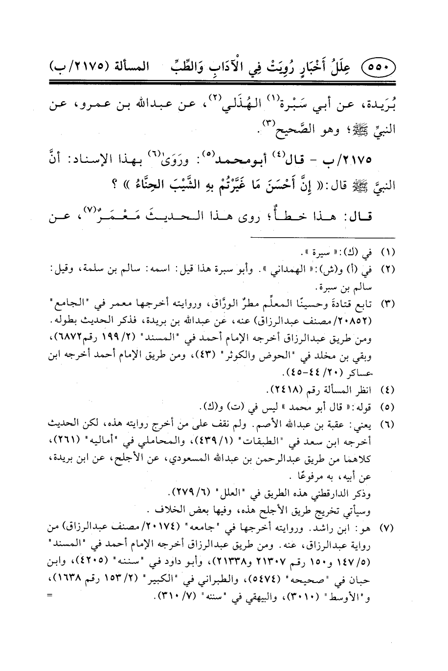 بُرَيدة، عَنْ أَبِي سَبْرة (١) الهُذَلي (٢) ، عن عبد الله بن عمرو، عن النبيِّ (ص) ؛ وهو الصَّحيح (٣) .