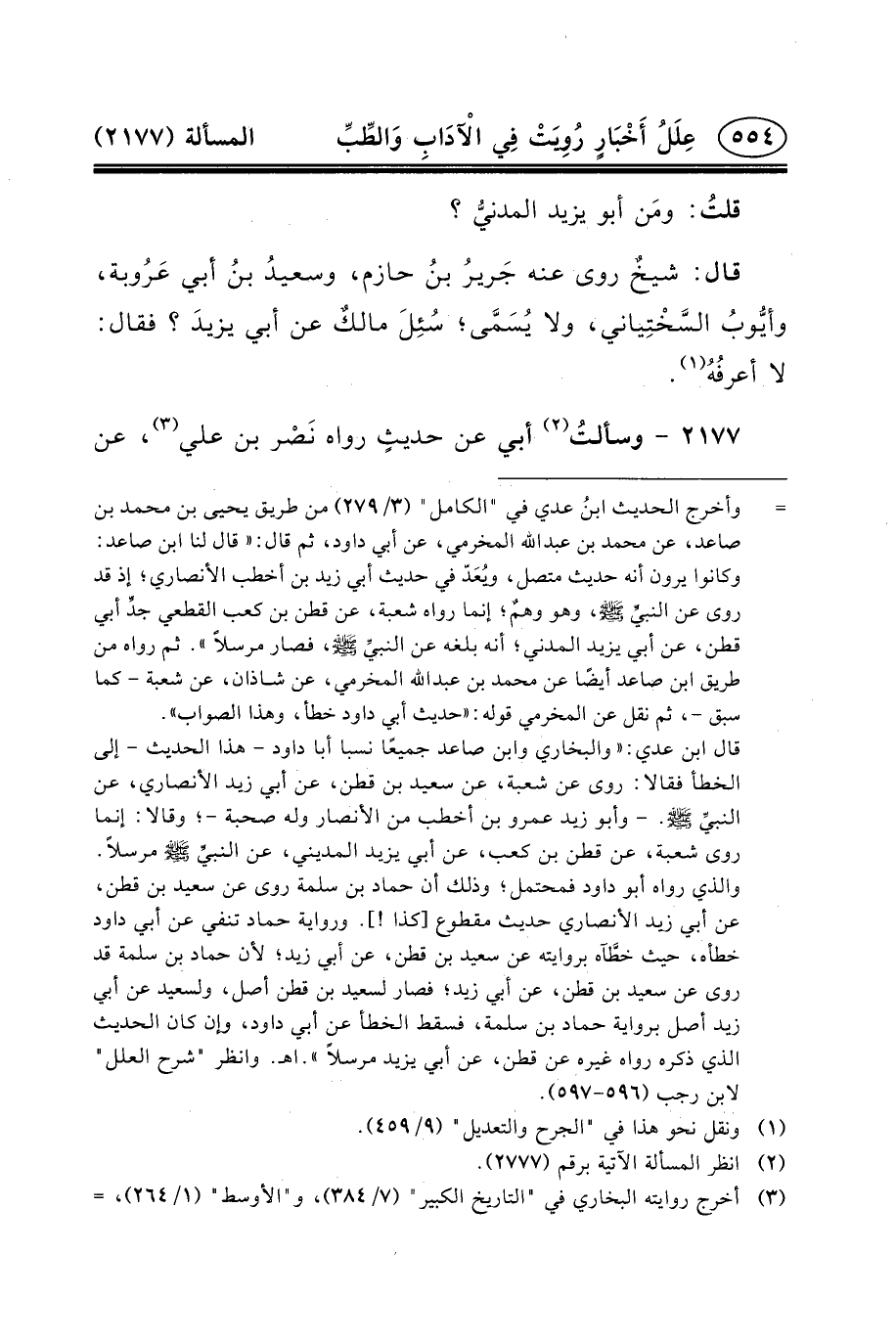 ٢١٧٧ - وسألتُ (٢) أَبِي عَنْ حديثٍ رَوَاهُ نَصْر بْنُ علي (٣) ،