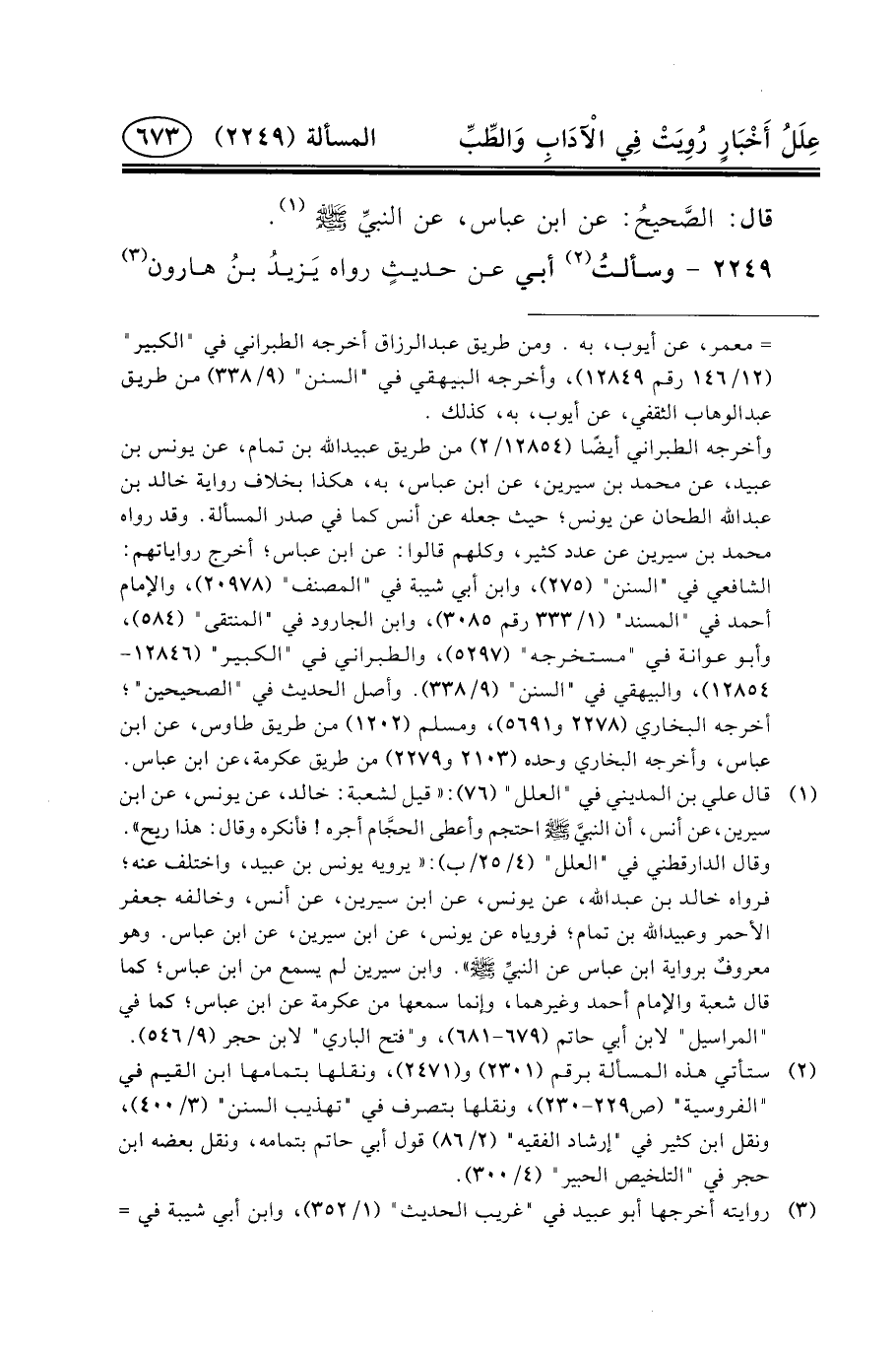 ٢٢٤٩ - وسألتُ (٢) أَبِي عَنْ حديثٍ رَوَاهُ يَزيدُ بنُ هارون (٣)