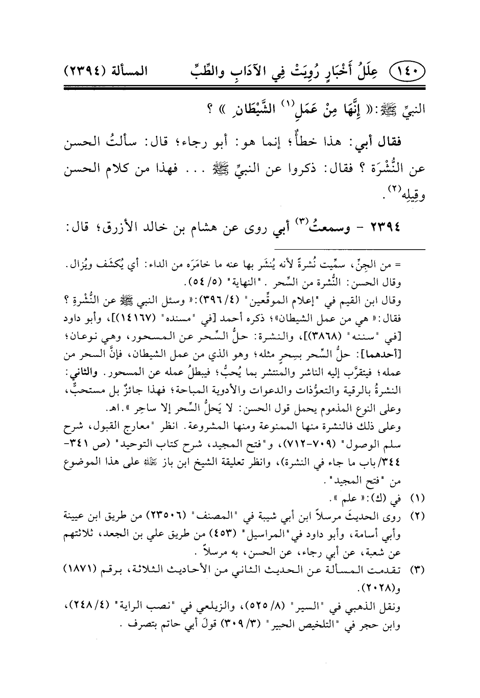 ٢٣٩٤ - وسمعتُ (٢) أَبِي رَوَى عَنْ هِشَامِ ابن خالد الأزرق؛ قال: