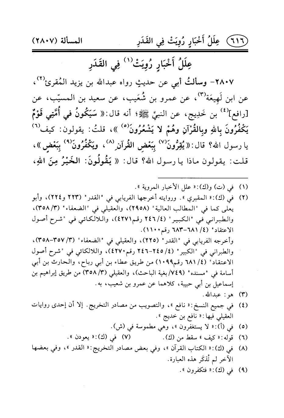 عِلَلُ أَخْبَارٍ رُوِيَتْ (١) فِي القَدَرِ