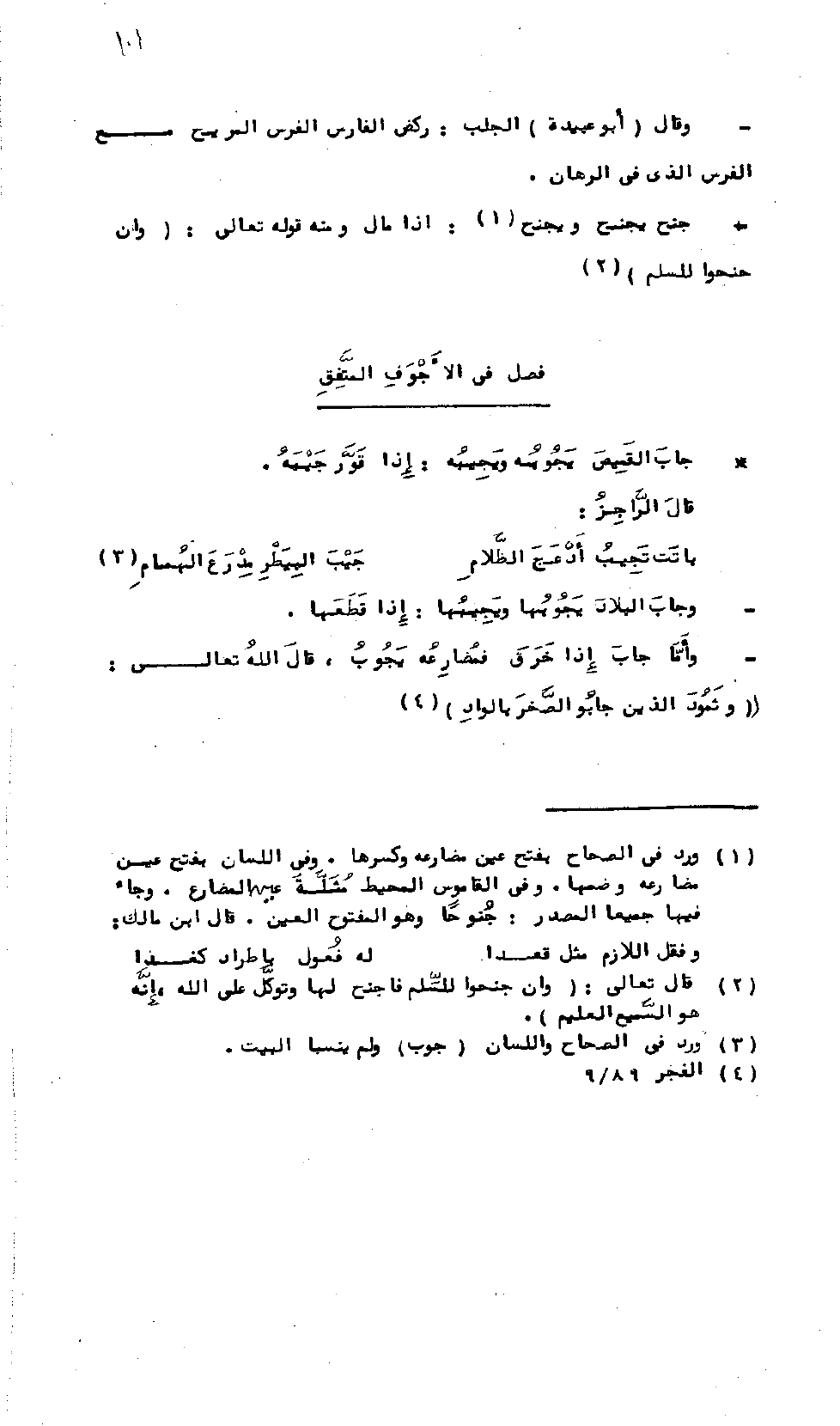 جَنَحَ يَجْنُحُ وَيَجْنِحُ: إِذَا مَالَ، وَمِنْهُ قَوْلُهُ تَعَالَى: {وَإِنْ جَنَحُوا لِلسَّلْمِ} [الأنفال: 61].