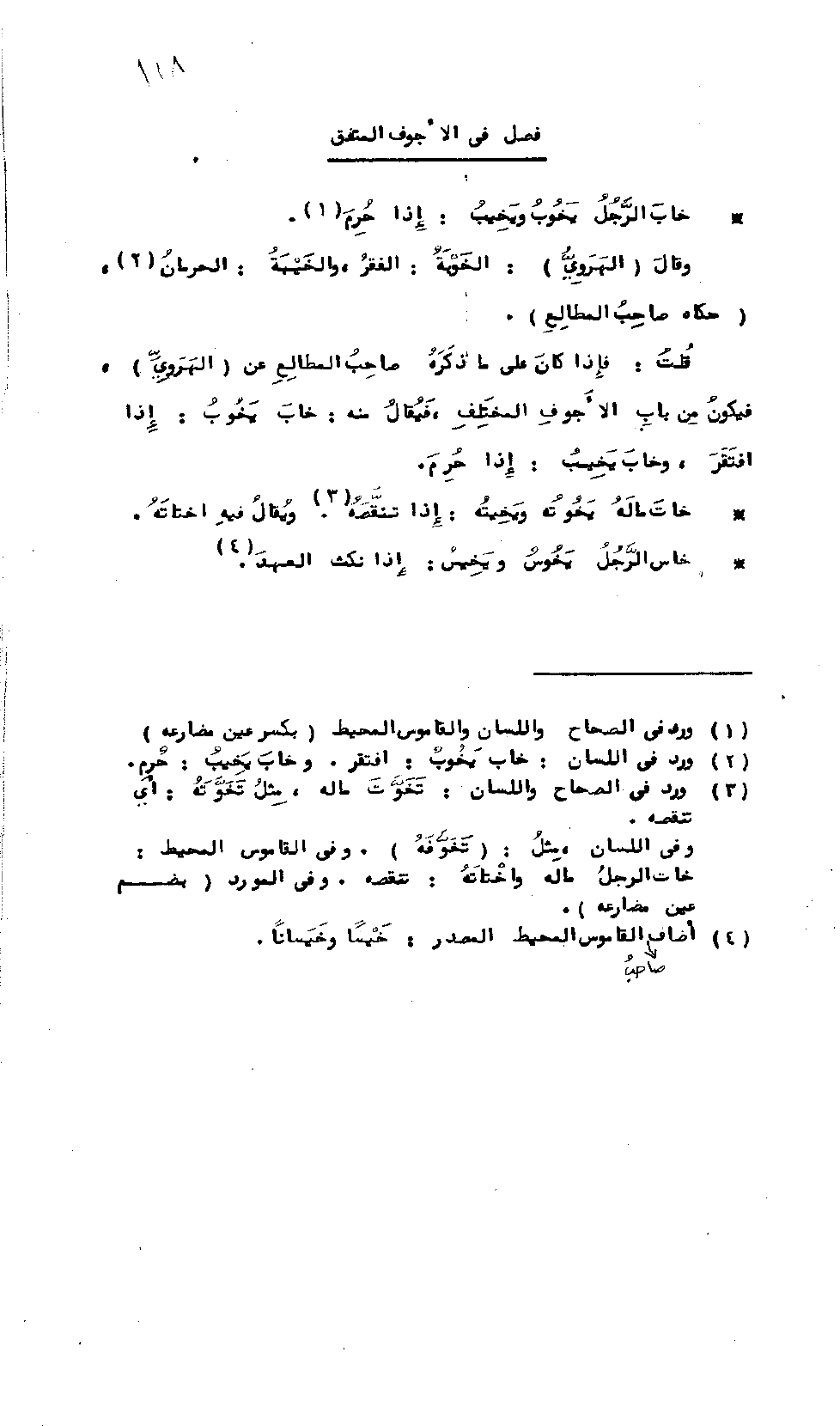 قلت: فإذا كان على ما ذكره صاحب المطالع عن الهرويّ فيكون من باب الأجوف المختلف، فيقال منه: خاب يخُوب: إذا افتقر، وخاب يخيب: إذا حُرِم.