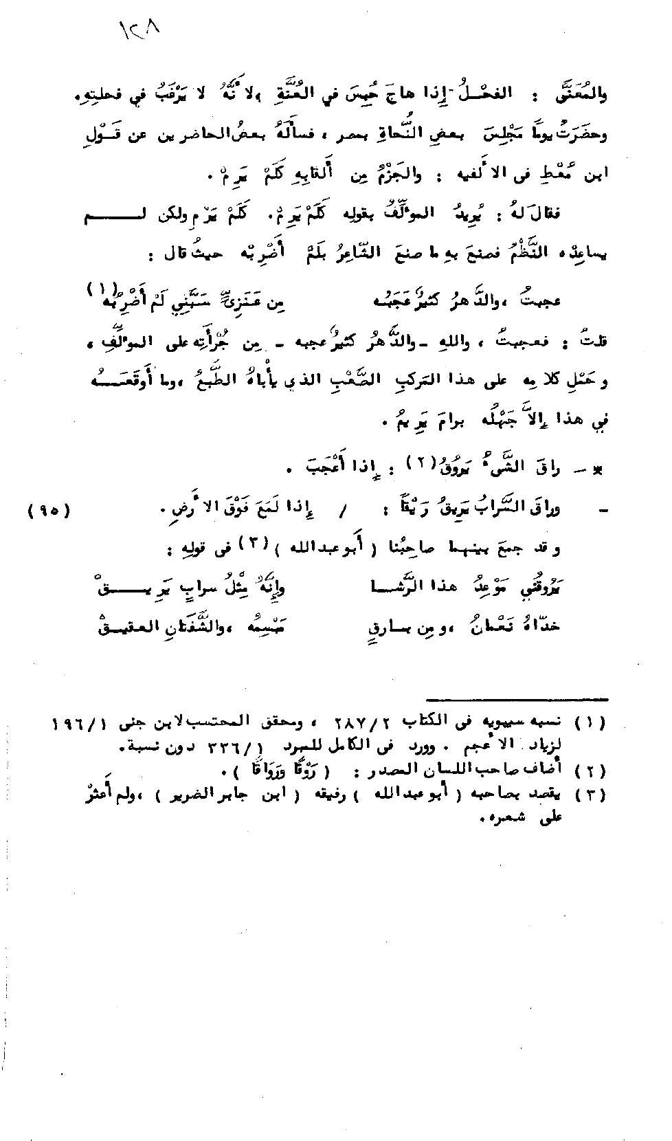 فَقَالَ لَهُ: يُرِيدُ المُؤَلِفُ بِقَوْلِهِ: كَلَمْ يَرِمْ: كَلَمْ يَرْمِ، وَلَكِنْ لَمْ يُسَاعِدْهُ النَّظْمُ، فَصَنَعَ بِهِ مَا صَنَعَ الشَّاعِرُ بِـ (لَمْ أَضْرِبْهُ) حَيْثُ قَالَ [زياد الأعجم]:
