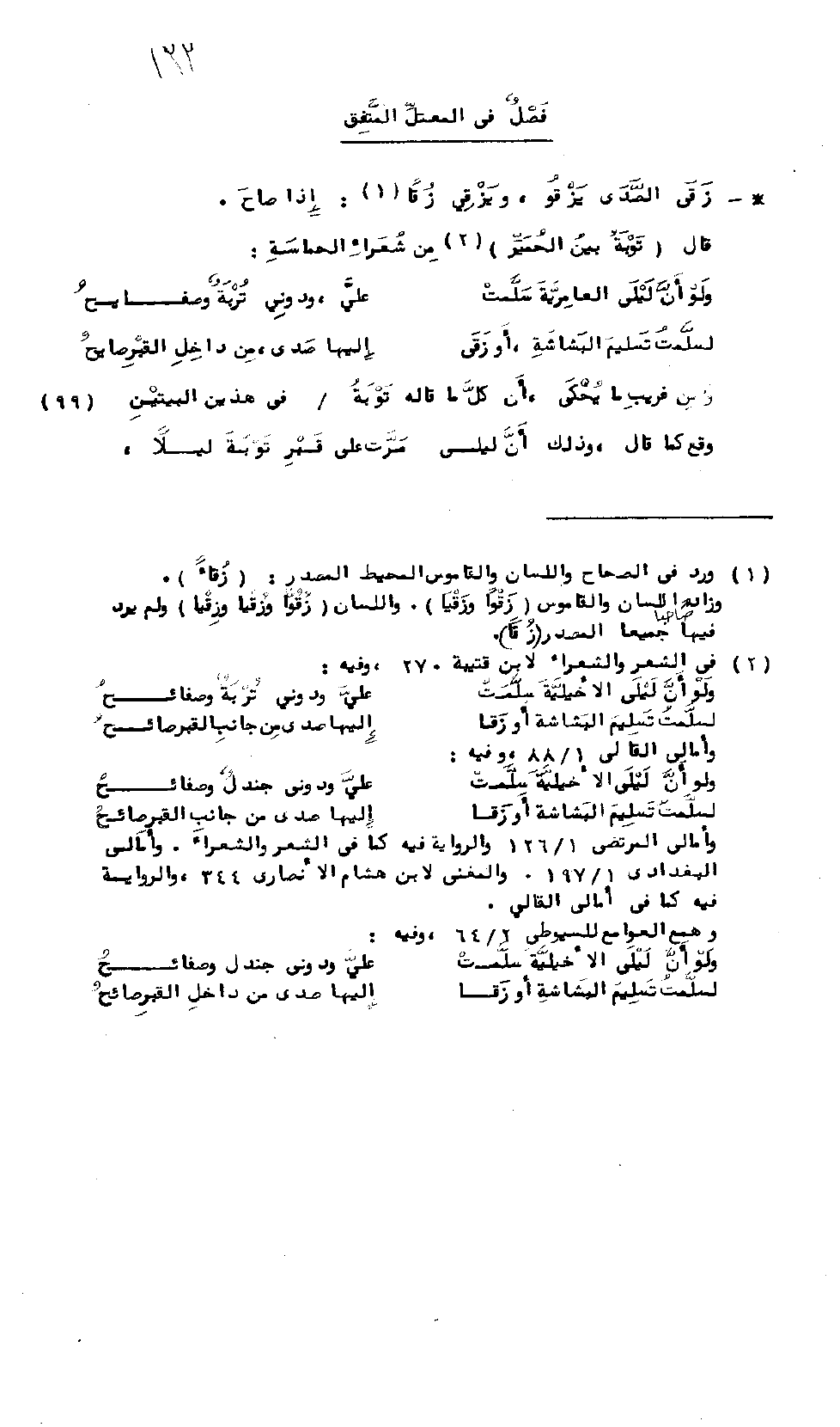 وَلَوْ أَنَّ لَيْلَى [الأخْيَلِيَّةَ] سَلَّمَتْ ... عَلَيَّ وَدُونِي تُرْبَةٌ وَصَفَائِحُ