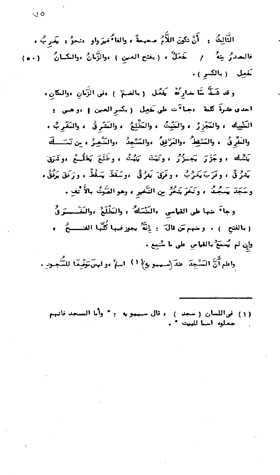 وَاعْلَمْ أَنَّ المَسْجِدَ عِنْدَ سِيبَوَيْهِ اسْمٌ، وَلَيْسَ مَوْضِعاً لِلسُّجُودِ.