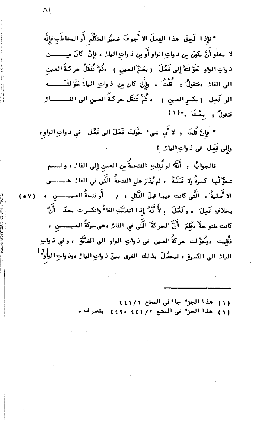 فَإِنْ قُلْتَ: لِأَي شَيْءٍ حَوَّلْتَ (فَعَلَ) إِلَى (فَعُلَ) فِي ذَوَاتِ الوَاوِ، وَإِلَى (فَعِلَ) فِي ذَوَاتِ اليَاءِ؟.