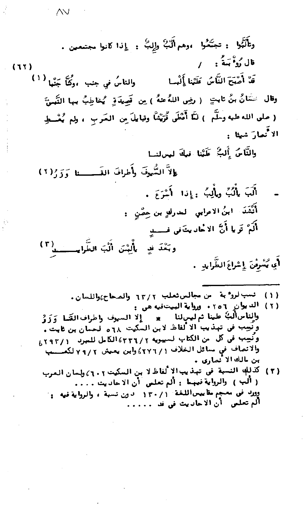 وَقَالَ حَسَانُ بْنِ ثَابِتٍ رَضِيَ اللَّهُ عَنْهُ مِنْ قَصِيدَةٍ يُخَاطِبُ بِهَا النَّبِيَّ - صلى الله عليه وسلم - لَمَّا أَعْطَى قُرَيْشاً وَقَبَائِلَ مِنَ العَرَبِ، وَلَمْ يُعْطِ الأَنْصَارَ شَيْئاً: