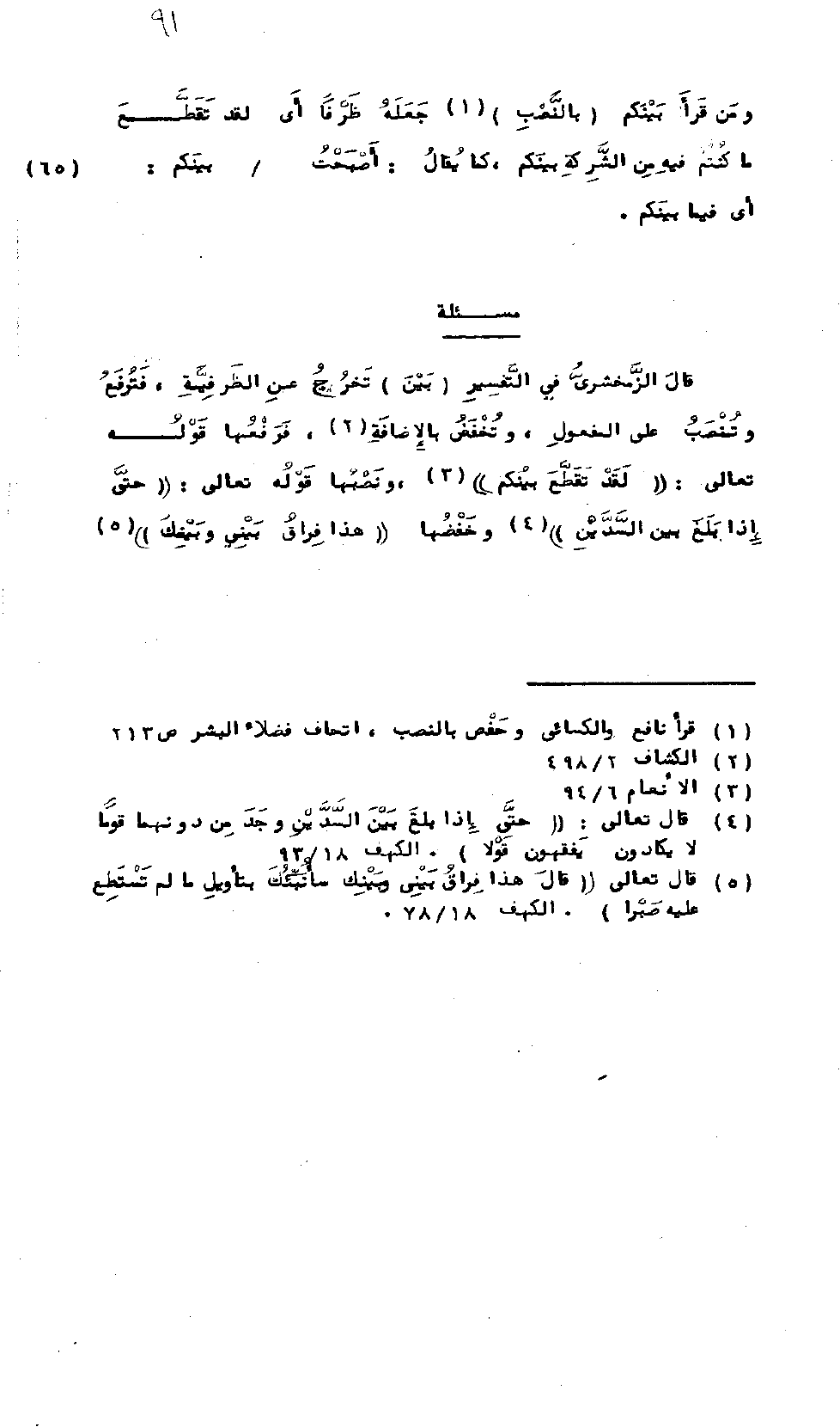 وَمَنْ قَرَأَ: (بَيْنَكُمْ) بِالنَّصْبِ جَعَلَهُ ظَرْفاً، أَيْ: لَقَدْ تَقَطَّعَ مَا كُنْتُمْ فِيهِ مِنَ الشَّرِكَةِ بَيْنَكُمْ، كَمَا يُقَالُ: أَصْبَحْتُ بَيْنَكُمْ: أَيْ: فِيمَا بَيْنَكُمْ.