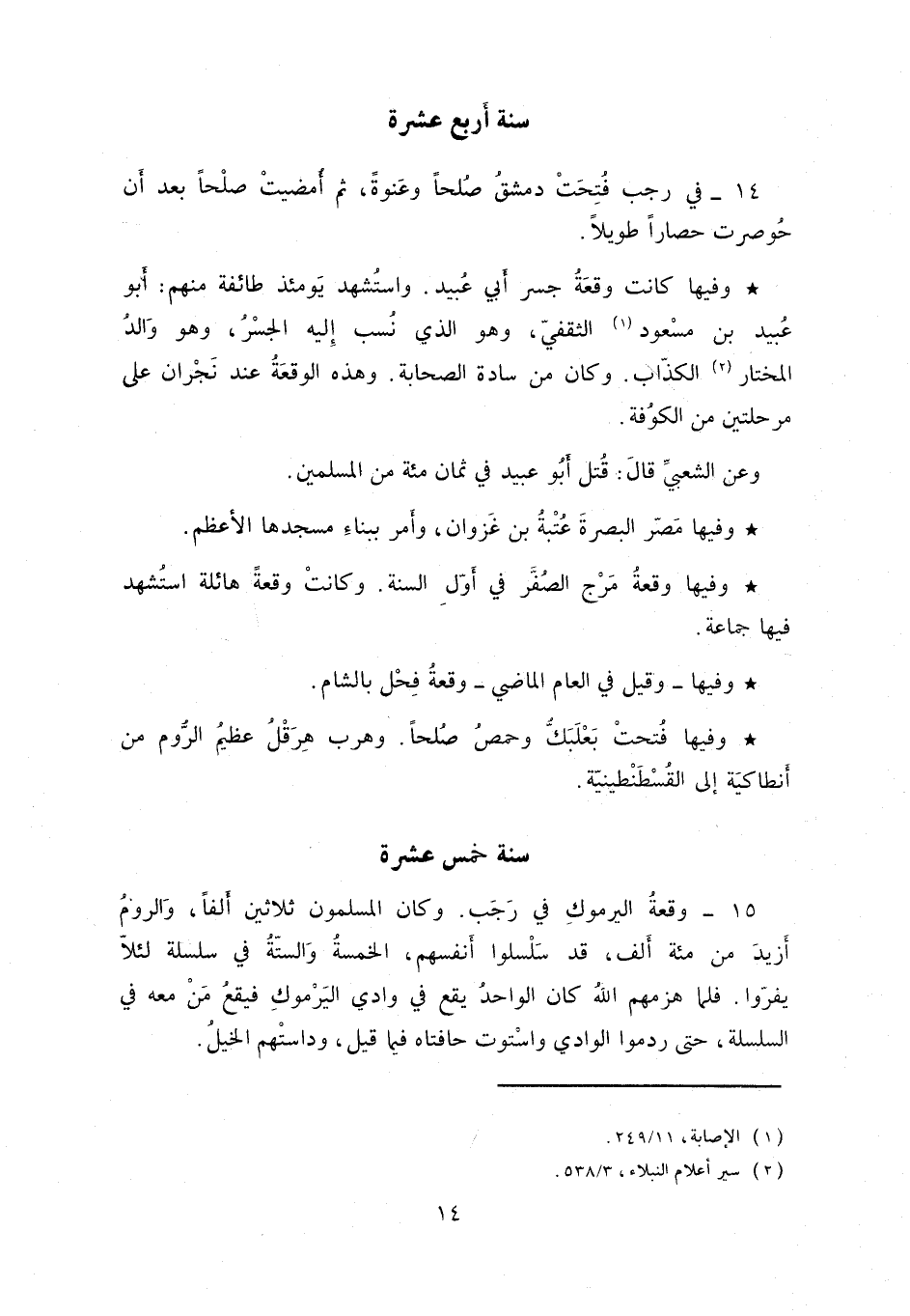 وفيها كانت وقعة جسر أبي عبيد. واستشهد يومئذ طائفة منهم: أبو عبيد بن مسعود الثقفي، وهو الذي نسب إليه الجسر، وهو والد المختار الكذاب وكان من سادة الصحابة وهذه الوقعة عند نجران على مرحلتين من الكوفة.