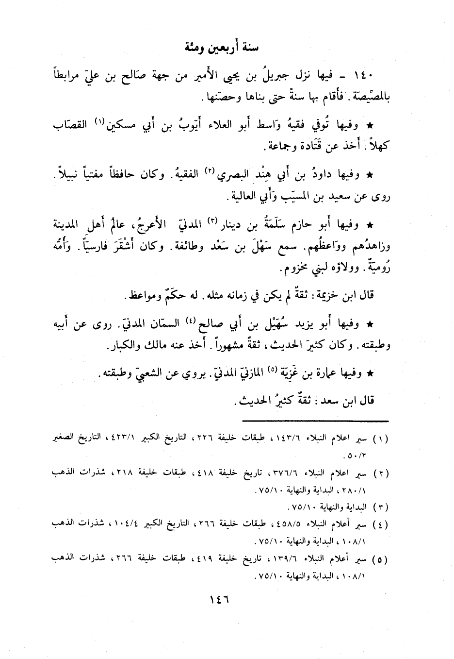 وفيها أبو يزيد سهَيل بن أبي صالح السمان المدني. روى عن أبيه وطبقته. وكَان كثير الحديث، تقةً مشهوراً. أخد عنه مالك والكبار.