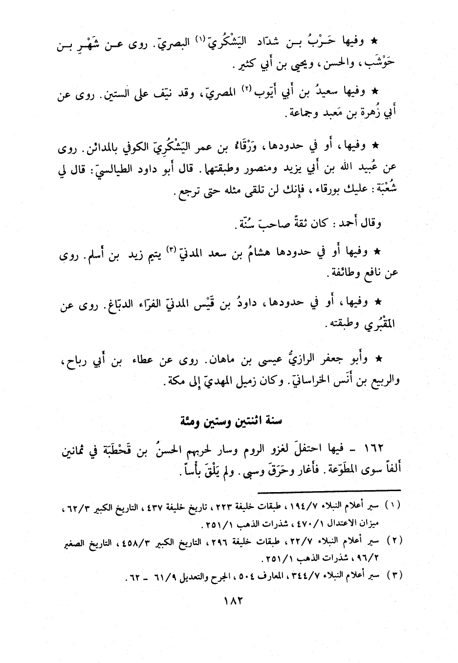 162- فيها احتفل لغزو الروم وسار لحربهم الحسن بن قحطبة في ثمانين ألفا سوى المطوعة فأغار وحرق وسبى ولم يلق بأسا