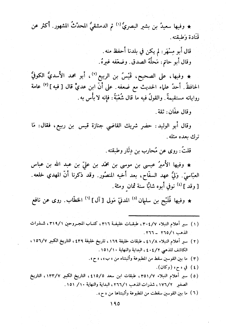 وفيها على الصحيح قيس بن الربيع، أبو محمد الأسدي الكوفي الحافظ. أحد علماء الحديث مع ضعفه. على أن ابن عدي قال فيه عامة رواياته مستقيمة. والقول فيه ما قال شعبة: فإنه لا بأس به.