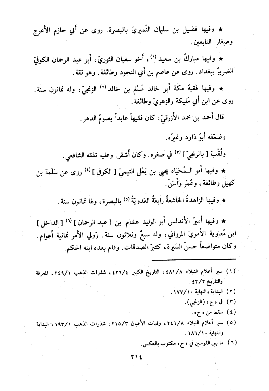 وفيها فقيه مكة أبو خالد مسلم بن خالد الزنجي، وله ثمانون سنة.