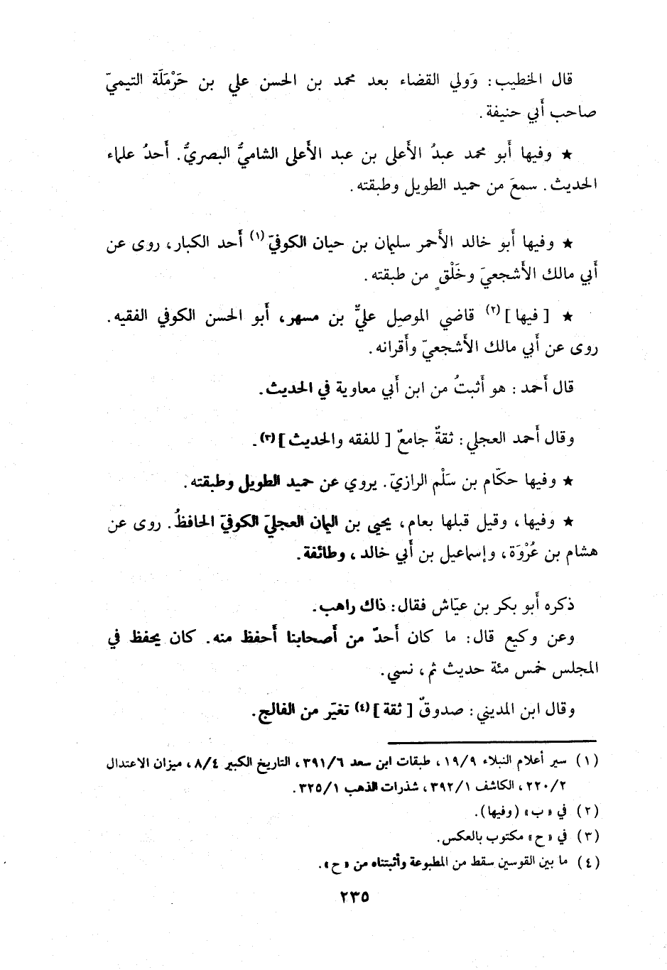 فيها قاضي الموصل علي بن مسهر. أبو الحسن الكوفي الفقيه. روى عن أبي مالك الأشجعي وأقرانه.