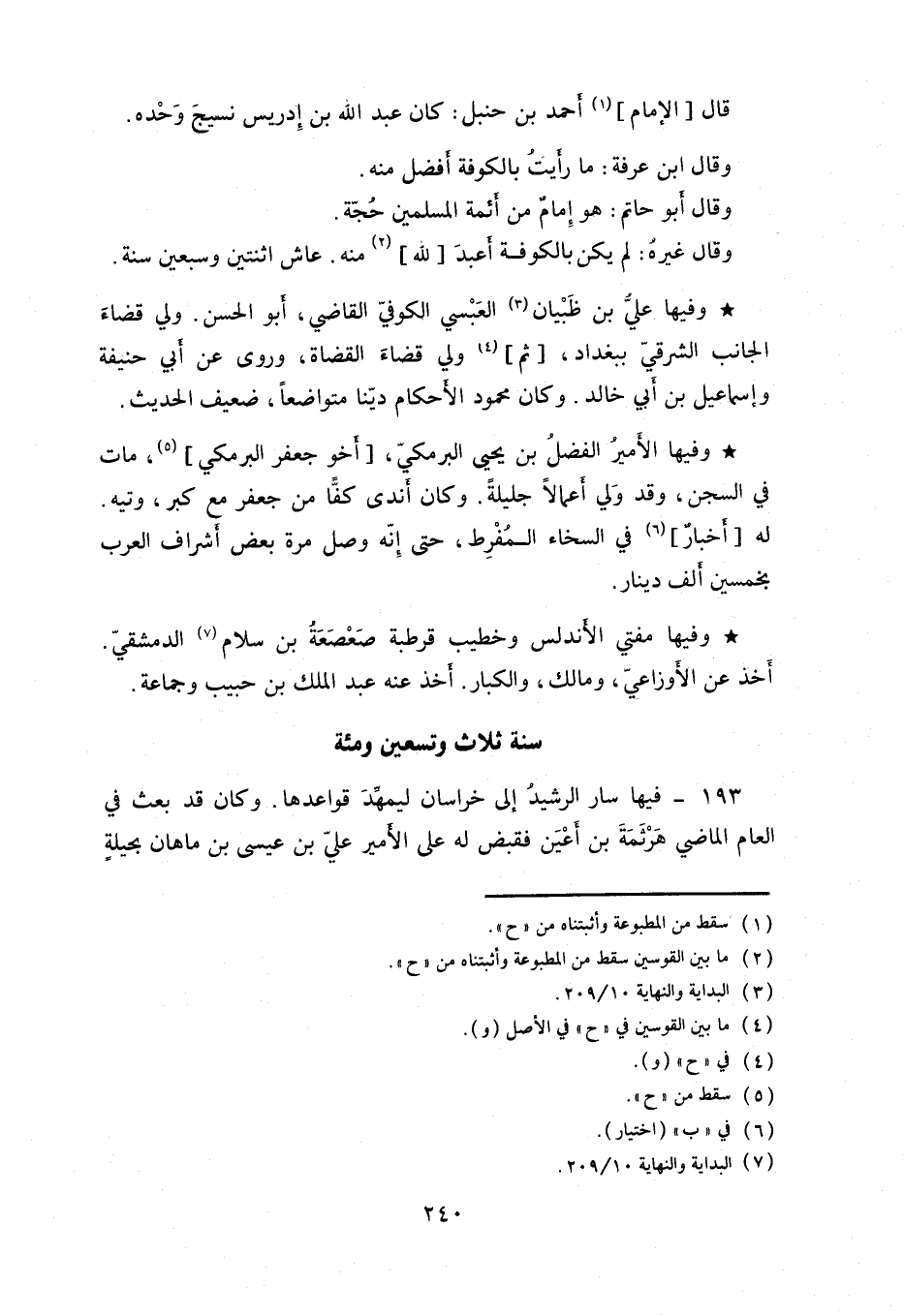 وفيها الأمير الفضل بن يحيى البرمكي، أخو جعفر البرمكي، مات في السجن، وقد ولي أعمالاً جليلة. وكان أندى كفاً من جعفر مع كبر، وتيه.