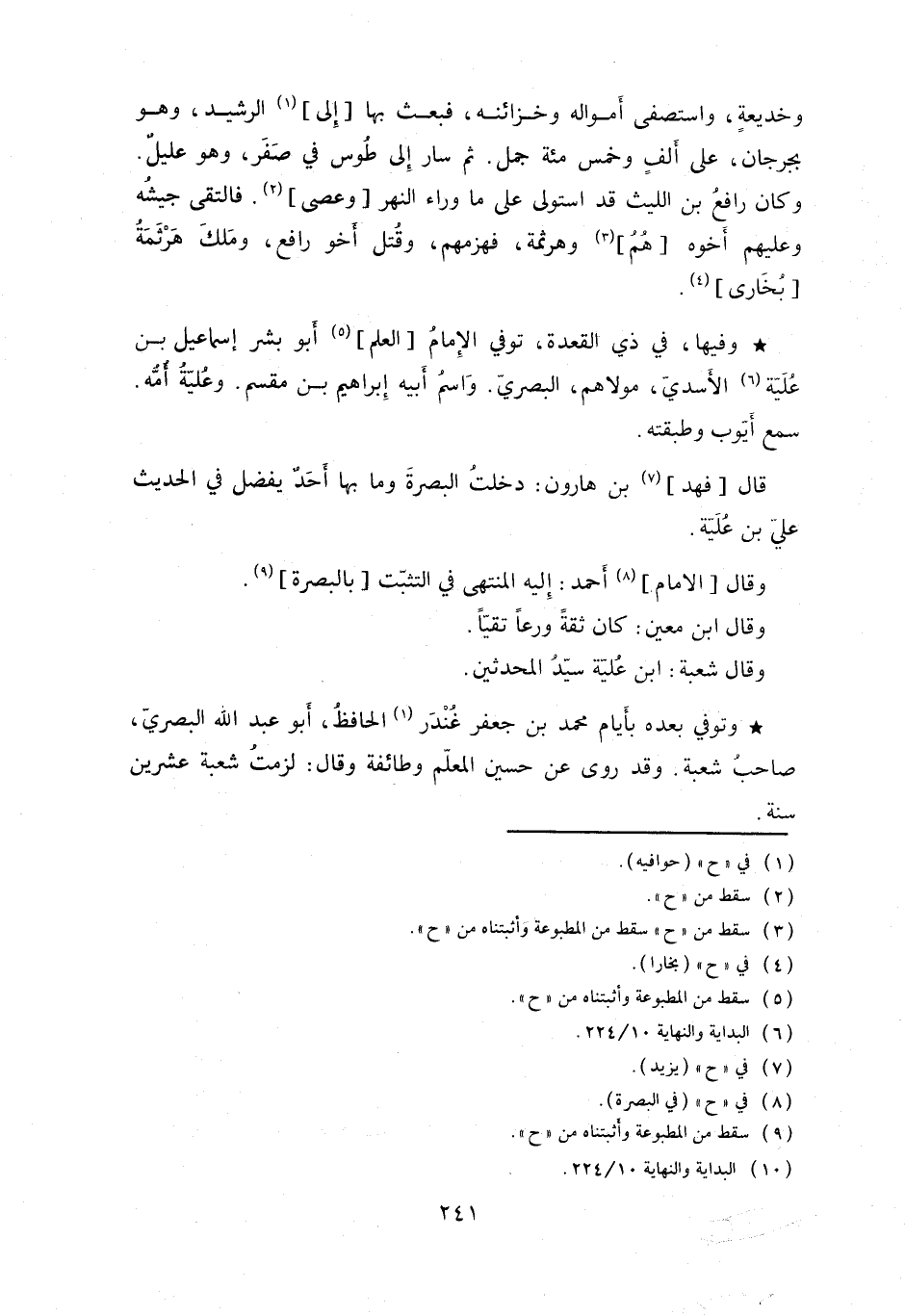 قال فهد بن هارون: دخلت البصرة وما بها أحد يفضل في الحديث علي بن علية.