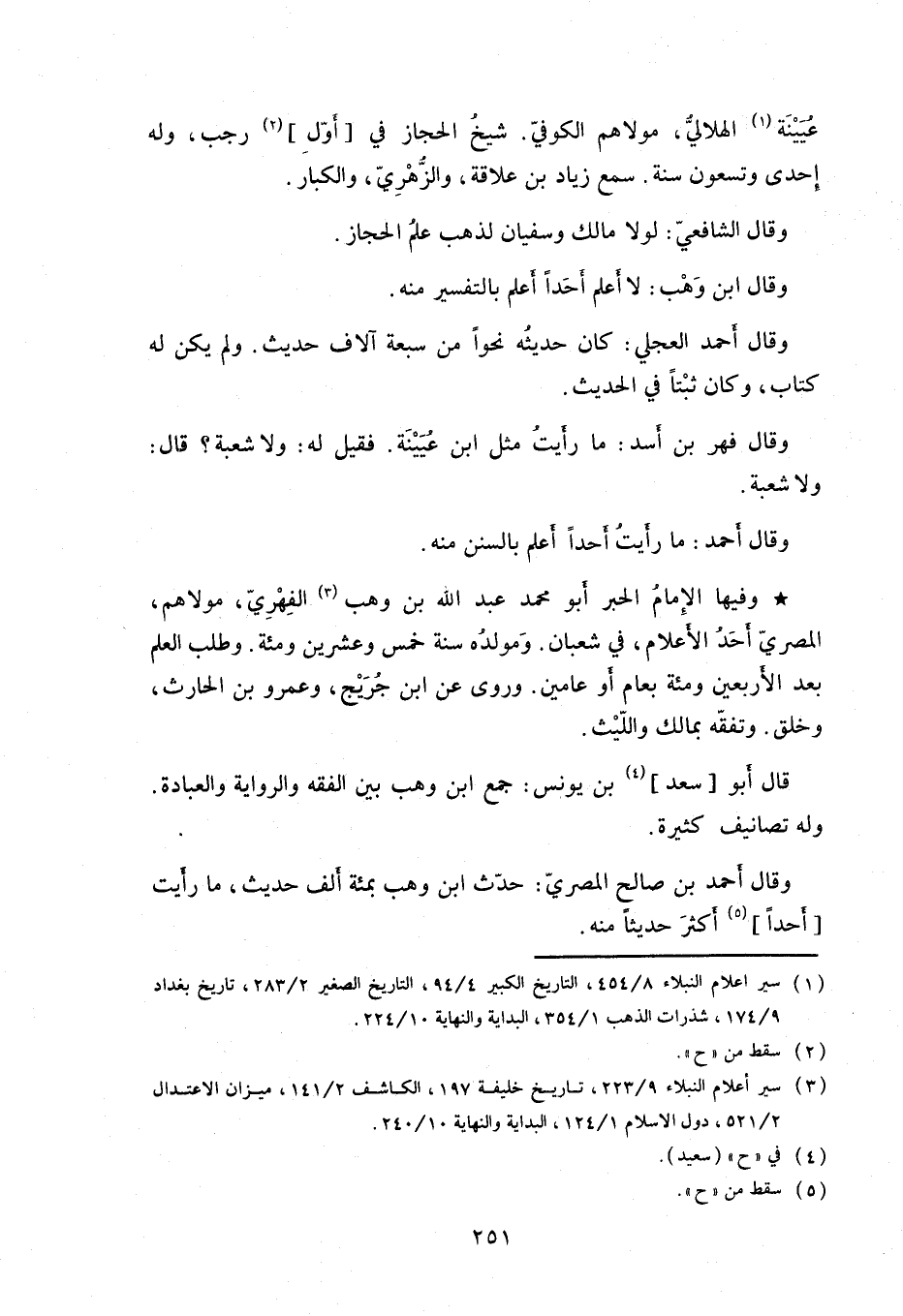 عيينة الهلالي، مولاهم الكوفي. شيخ الحجاز في أول رجب، وله إحدى وتسعون سنة. سمع زياد بن علاقة، الزهري والكبار. وقال الشافعي: لولا مالك وسفيان لذهب علم الحجاز.