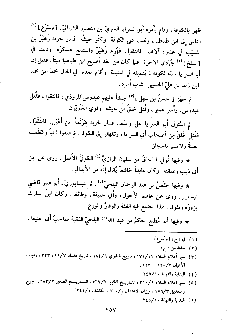 وفيها توفي إسحاق بن سليمان الرازي الكوفي الأصل. روى عن ابن أبي ذيب وطبقته. وكان عابداً خاشعاً يقال إنه من الأبدال.