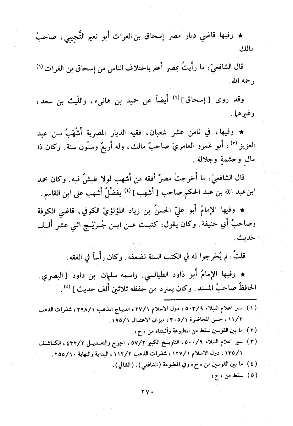 وفيها قاضي ديار مصر إسحاق بن الفرات أبو نعيم التجيبي، صاحب مالك.