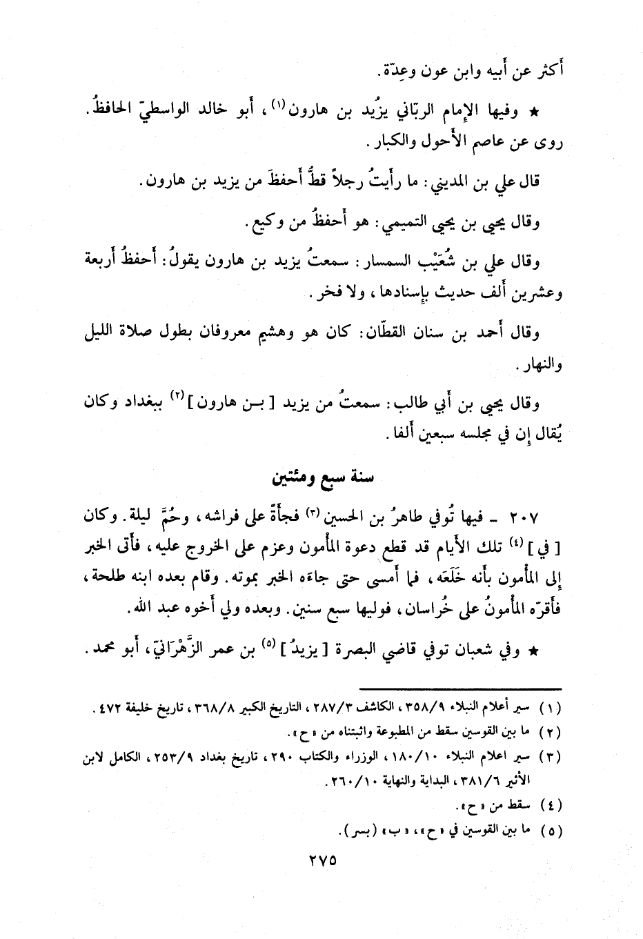وفيها الإمام ابن الرباني يزيد بن هارون، أبو خالد الواسطي الحافظ. روى عن عاصم الأحول والكبار.