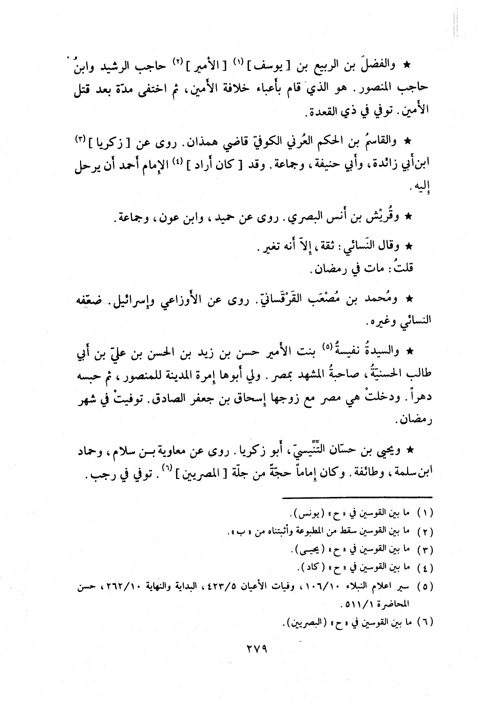 والفضل بن الربيع بن يوسف الأمير حاجب الرشيد وابن حاجب المنصور. هو الذي قام بأعباء خلافة الأمين، ثم اختفى مدة بعد قتل الأمين. توفي في ذي القعدة.