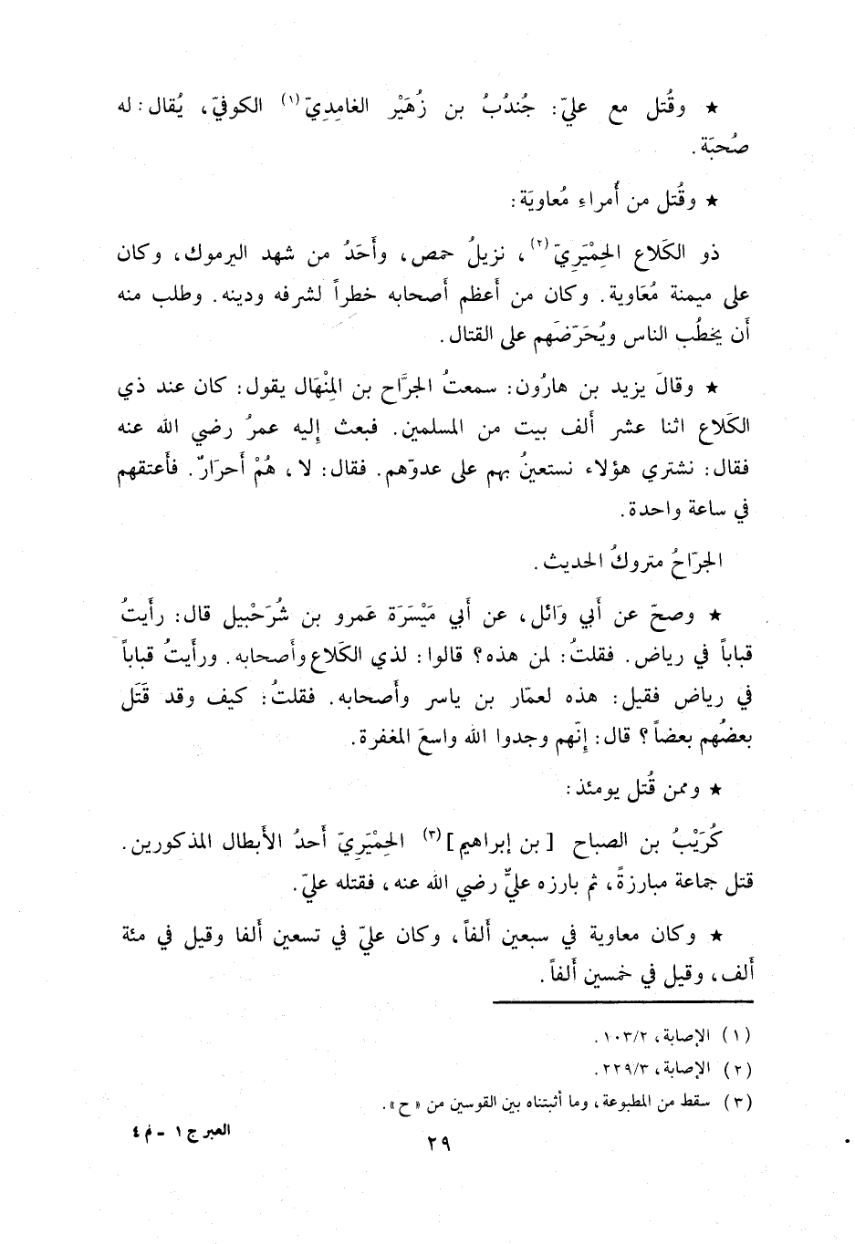 وصح عن أبي وائل، عن أبي ميسرة عمرو بن شرحبيل قال: رأيت قباباً في رياض. فقلت: لمن هذه؟ قالوا: لذي الكلاع وأصحابه. ورأيت قباباً في رياض فقيل: هذه لعمار بن ياسر وأصحابه. فقلت: كيف وقد قتل بعضهم بعضاً؟ قال: إنهم وجدوا الله واسع المغفرة.