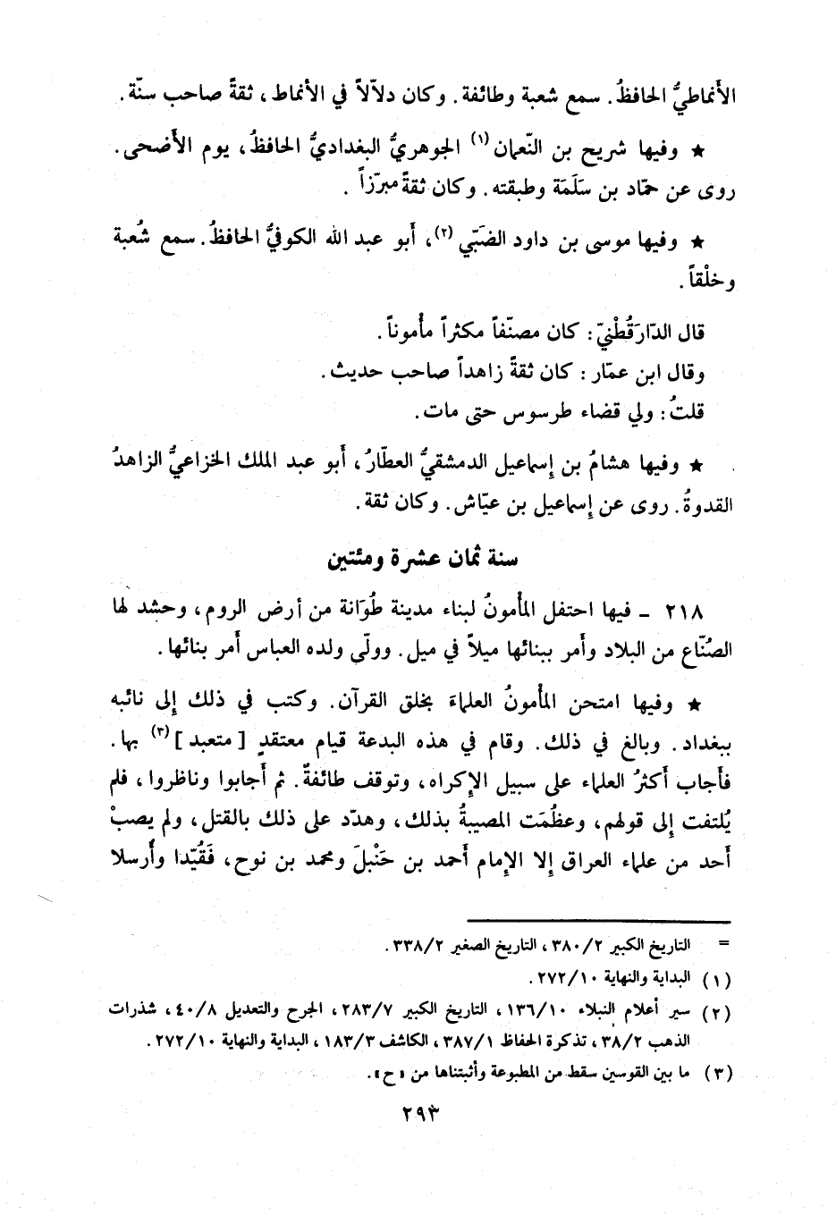 وفيها امتحن المأمون العلماء بخلق القرآن. وكتب في ذلك إلى نائبه ببغداد. وبالغ في ذلك. وقام في هذه البدعة قيام معتقد متعبد بها.