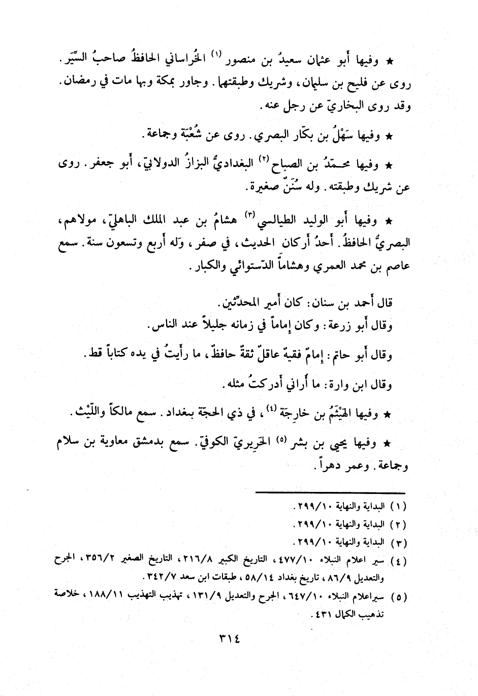 وفيها محمد بن الصباح البغدادي البزاز الدولابي، أبو جعفر. روى عن شريك وطبقته. وله سنن صغيرة.