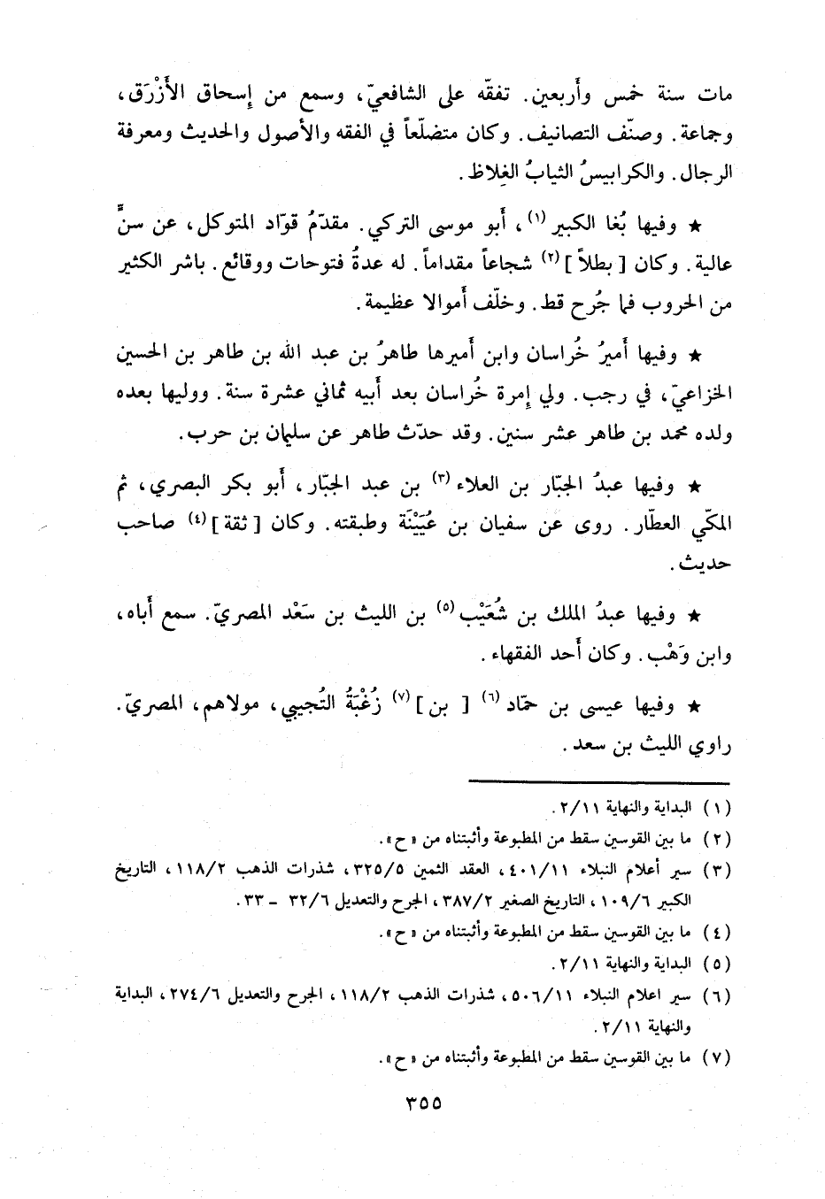 وفيها بغا الكبير. أبو موسى التركي. مقدم قواد المتوكل. عن سن عالية. وكان بطلاً شجاعاً مقداماً. له عدة فتوحات ووقائع. باشر الكثير من الحروب فما جرح قط. وخلف أموالاً عظيمة. وفيها أمير خراسان وابن أميرها طاهر بن عبد الله بن طاهر بن الحسين الخزاعي، في رجب. ولي بن إمرة خراسان بعد أبيه ثماني عشرة سنة. ووليها بعده ولده محمد بن طاهر عشر سنين. وقد حدث طاهر عن سليمان بن حرب.