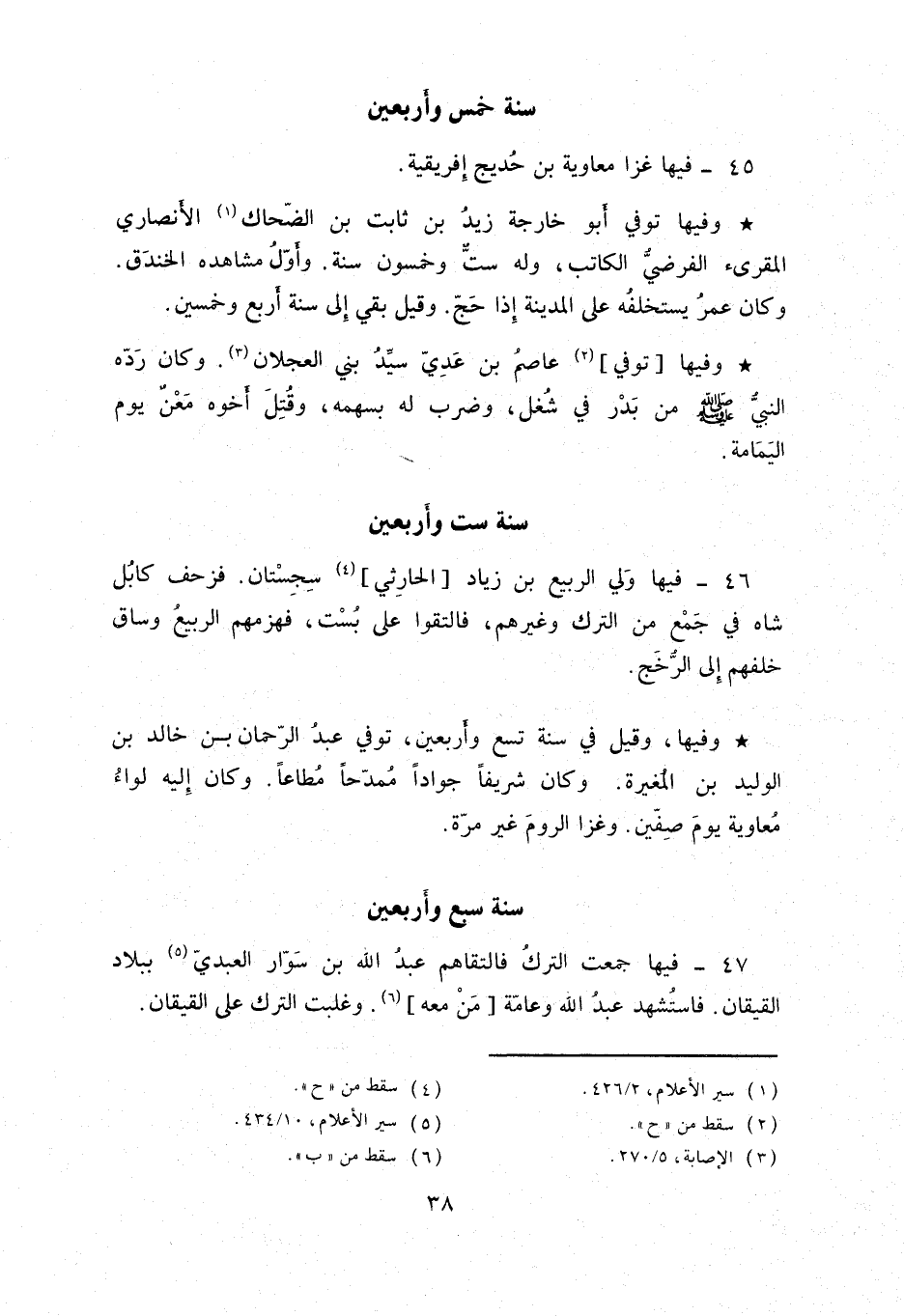وفيها توفي أبو خارجة زيد بن ثابت بن الضحاك الأنصاري المقرئ الفرضي الكاتب، وله ست وخمسون سنة. وأول مشاهدة الخندق.