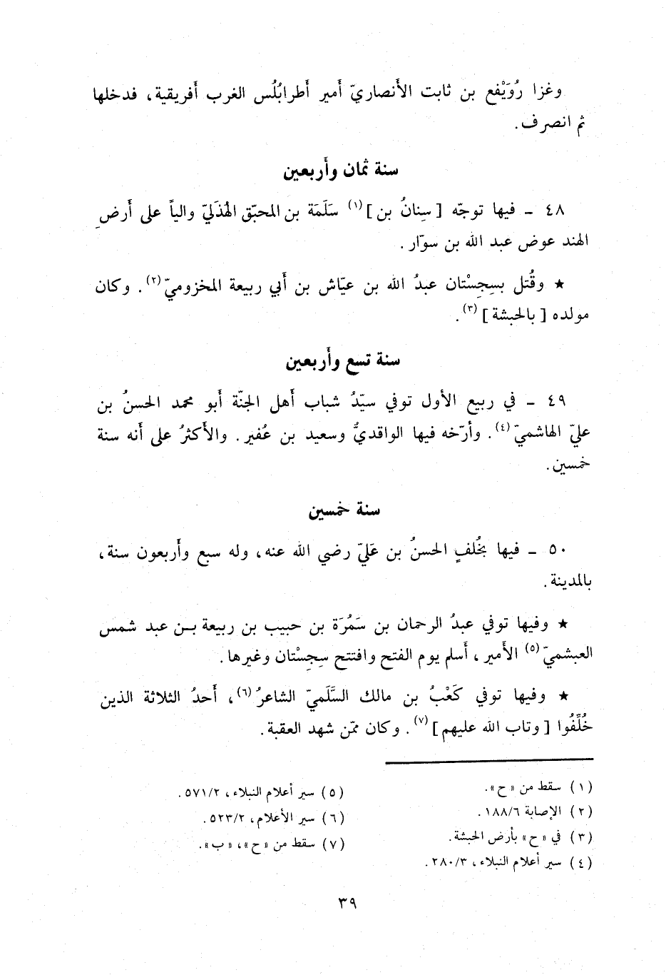 وفيها توفي عبد الرحمن بن سمرة بن حبيب بن ربيعة بن عبد شمس العبشمي الأمير، أسلم يوم الفتح وافتتح سجستان وغيرها.